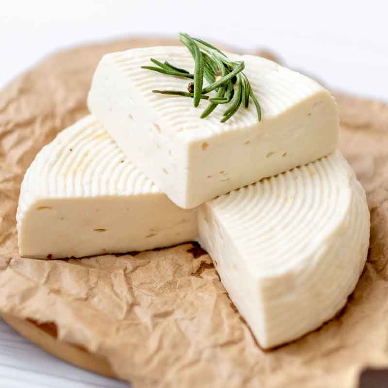 Selezione di fermenti studiati per ottenere l’originale formaggio molle di Castel San Pietro. Formaggio vaccino fresco a pasta semimolle. Bucciatura accenata, consistenza morbida e sapore delicato.